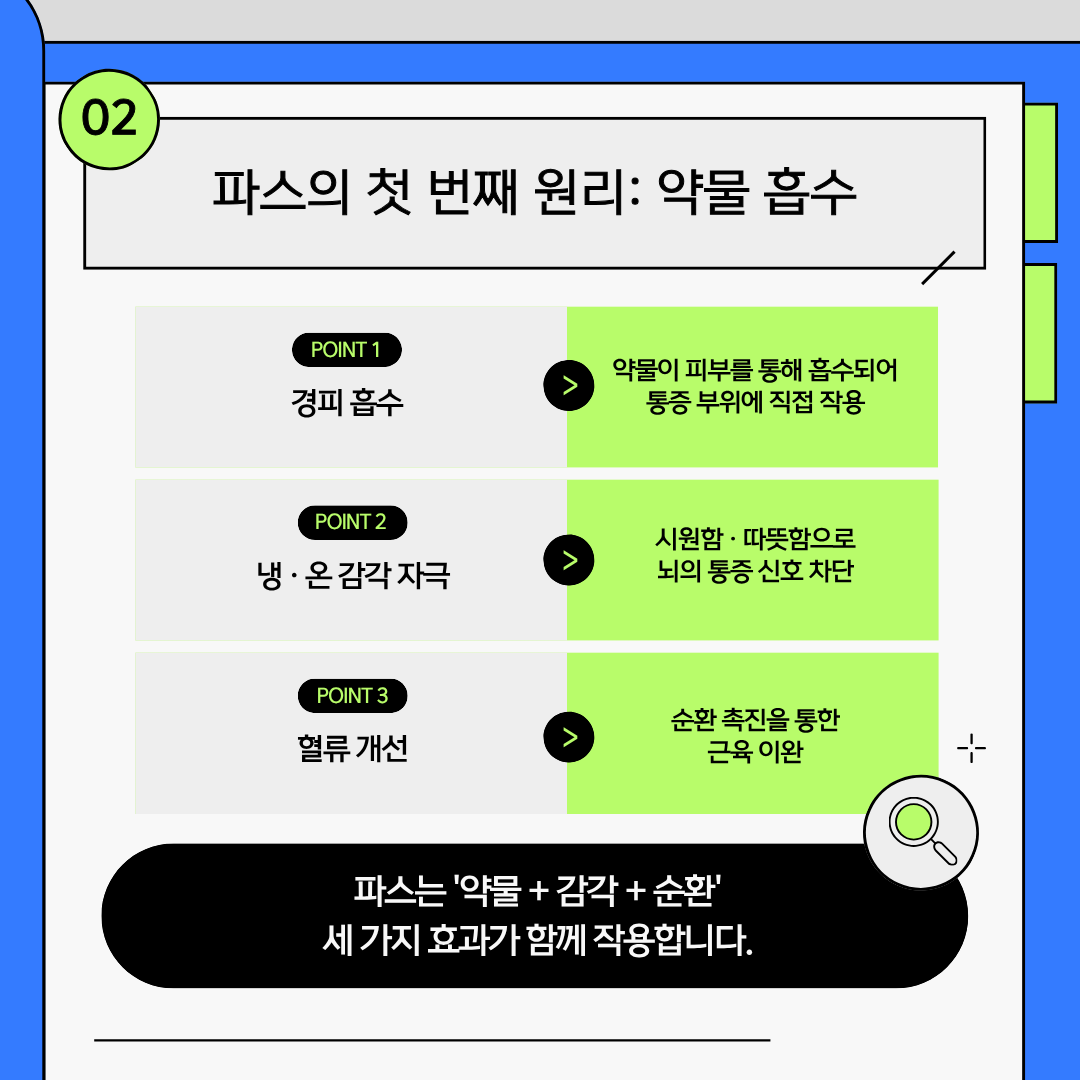 ์ด ์ฝ๋ฌผ์ด ํผ๋ถ๋ฅผ ํตํด ํก์๋์ด ํต์ฆ ๋ถ์์ ์ง์ ์์ฉํ๋ต๋๋ค.