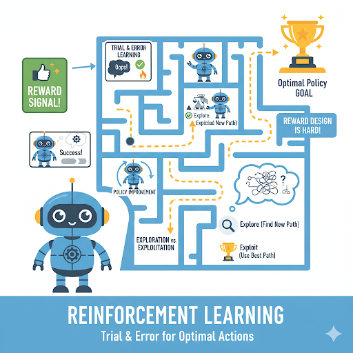 - ๊ฐํํ์ต: ์๋ฎฌ๋ ์ด์ ์ด๋ ์ค์ ํ๊ฒฝ์์ ๋ณด์์ ๋ฐ์๊ฐ๋ฉฐ ์ต์ ์ ์ฑ ์ ํ์ตํ๋ค.