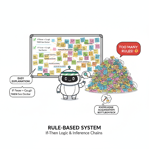 ์ด ๋ฐฉ์์ If-Then ๊ท์น๊ณผ ์ถ๋ก ์ฒด์ธ์ ํตํด ์ ๋ฐฉ / ํ๋ฐฉ ์ถ๋ก ์ผ๋ก ๊ฒฐ๋ก ์ ๋์ถํ๋ค.