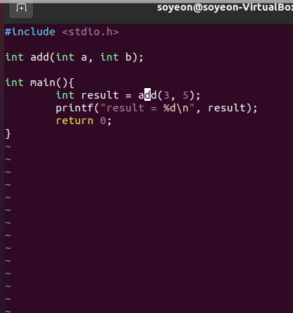 ๋ค์ ์๋์ ๋ช ๋ น์ด๋ก main.c ํ์ผ์ ์ด์ด์ ์ฌ์ง๊ณผ ๊ฐ์ด add๋ผ๋ ๋จ์ด ์๋ก ์ปค์๋ฅผ ์ด๋ํ๋ค.